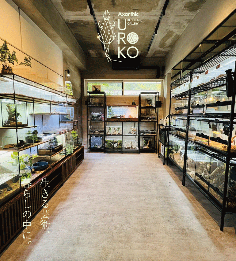 爬虫類や両生類を“見て楽しむ”ことができるギャラリー型のショップAxanthic Reptiles Gallery UROKO。