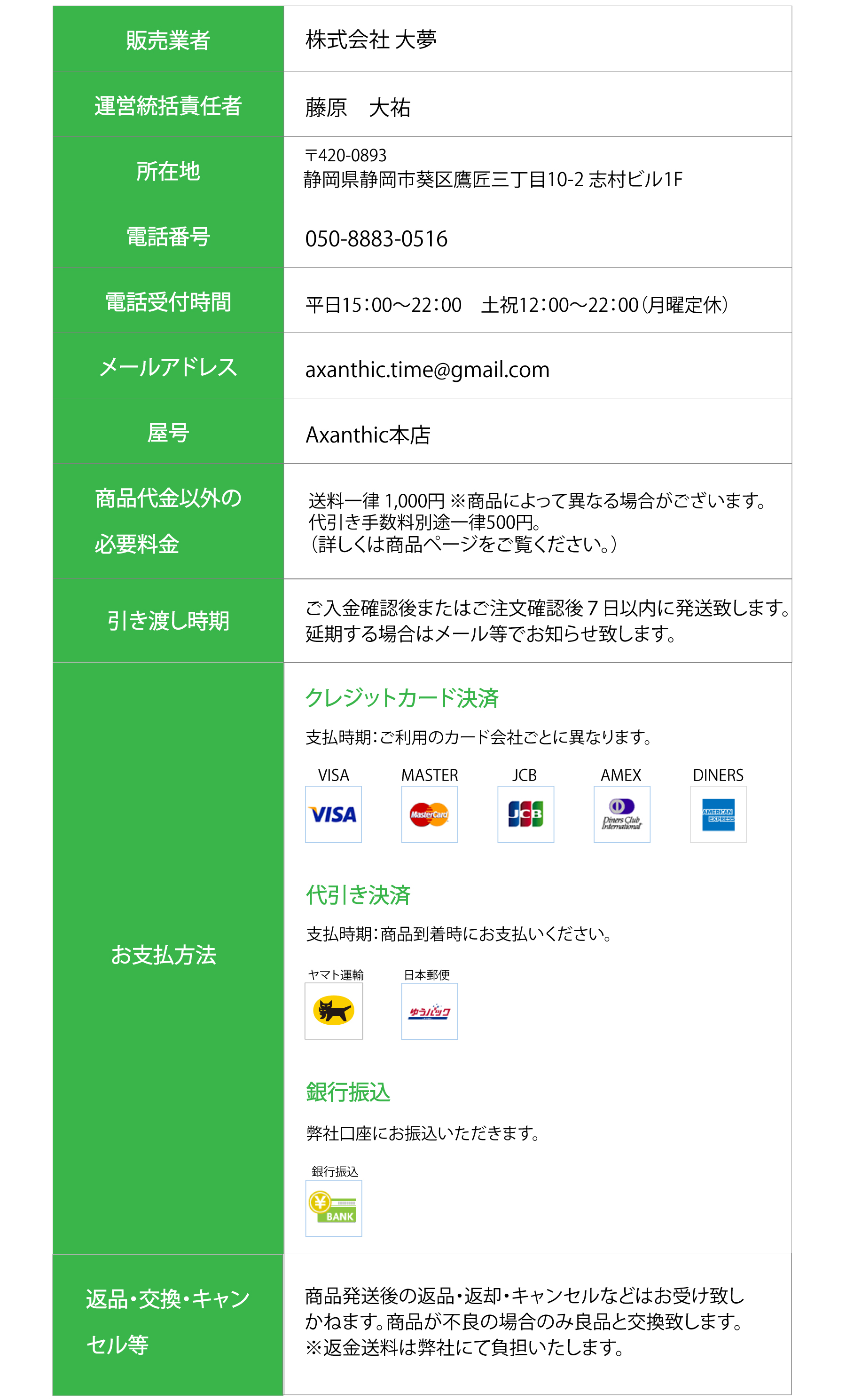 特定商取引法に基づく表記